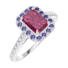 « L'ATELIER » N.º 170424Anillo Oro blanco 9 quilates - Rubí Rectángulo 0.5 quilates - Halo Zafiro azul - Engastado Diamante 4.8 (49)