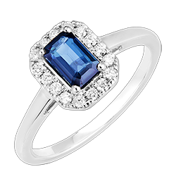 « L'ATELIER » N.º 170675Anillo Oro blanco 18 quilates - Zafiro azul Rectángulo 0.5 quilates - Halo Diamante 4.7 (47)