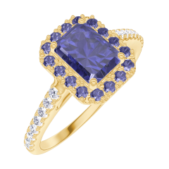 « L'ATELIER » N.º 170710Anillo Oro amarillo 9 quilates - Zafiro azul Rectángulo 0.5 quilates - Halo Zafiro azul - Engastado Diamante 4.7 (47)