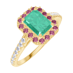 « L'ATELIER » N.º 170982Anillo Oro amarillo 9 quilates - Esmeralda Rectángulo 0.5 quilates - Halo Rubí - Engastado Diamante 4.7 (46)