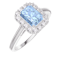 « L'ATELIER » N.º 211914Anillo Oro blanco 18 quilates - Topacio azul Rectángulo 0.5 quilates - Halo Diamante 4.8 (49)