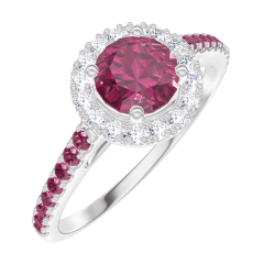 « L'ATELIER » N.º 170300Anillo Oro blanco 9 quilates - Rubí redondo 0.5 quilates - Halo Diamante - Engastado Rubí 4.7 (18)