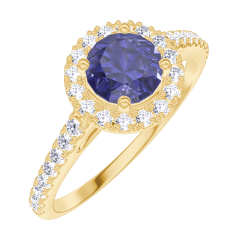 « L'ATELIER » N.º 170581Anillo Oro amarillo 18 quilates - Zafiro azul redondo 0.5 quilates - Halo Diamante - Engastado Diamante 4.7 (18)
