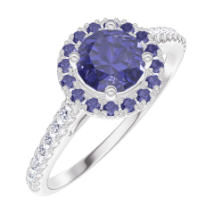« L'ATELIER » N.º 170615Anillo Oro blanco 18 quilates - Zafiro azul redondo 0.5 quilates - Halo Zafiro azul - Engastado Diamante 4.7 (18)