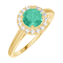 « L'ATELIER » N.º 170866Anillo Oro amarillo 9 quilates - Esmeralda redondo 0.5 quilates - Halo Diamante 4.7 (18)