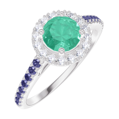 « L'ATELIER » N.º 170880Anillo Oro blanco 9 quilates - Esmeralda Redondo 0.5 quilates - Halo Diamante - Engastado Zafiro azul 4.7 (18)