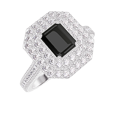 « L'ATELIER » N.º 421270Anillo Oro blanco 9 quilates - Diamante negro Rectángulo 0.5 quilates - Halo Diamante - Engastado Diamante