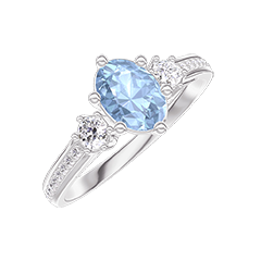 Anillo Oro blanco 18 quilates - Topacio azul Ovalo 0.5 quilates - Piedras laterales Diamante - Engastado Diamante