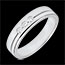 En el centro, una trilogía de tres diamantes con un peso total de 0,156 quilates aporta un brillo discreto.
