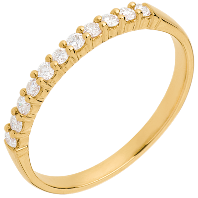 Sencilla a la par que brillante.Una alianza de oro amarillo con 11 diamantes engarzados que hacen de este anillo una joya eterna y resplandeciente.