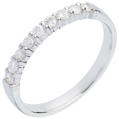 Alianza oro blanco semi empedrado - engaste garras - 0.3 quilates - 9 diamantes