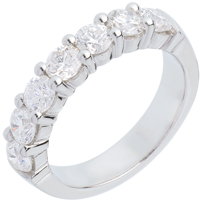 Alianza oro blanco semi empedrado - engaste garras - 1.5 quilates - 7 diamantes