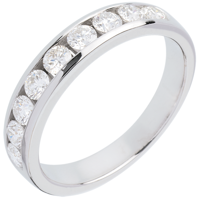 Alianza oro blanco semi empedrado - engaste raíl - 0.75 quilates - 9 diamantes