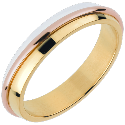 Una trilogía de anillos tres tipos de oro que centellean como los niños del sol.