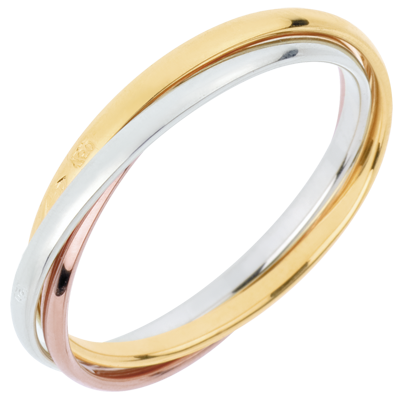 Un anillo de Oro Amarillo, otro de Oro Blanco y un ultimo de Oro Rosa; unidos para la eternidad.