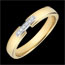 Este anillo en oro amarillo 18 quilates presenta seis diamantes blancos de calidad HSI1, con un peso total de 0,024 quilates, que aportan brillo y delicadeza.