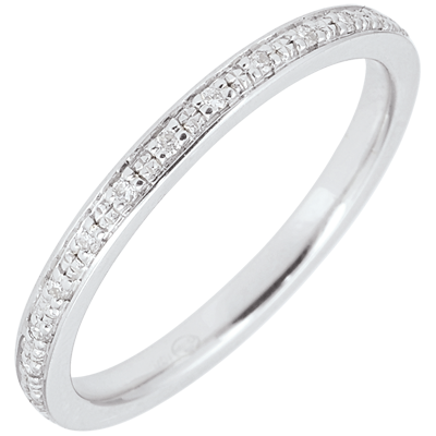 Una alianza rodeada de diamantes circulo completo elegante y atemporal.La pieza brillante que te acompañará siempre. tanto con un anillo de compromiso. como en solitario.