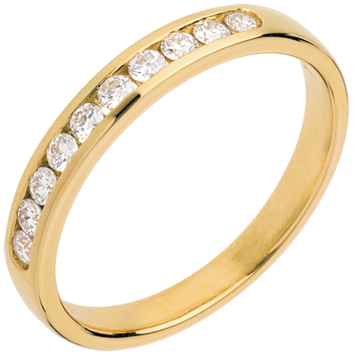 Alianza oro amarillo semi empedrado - engaste raíl - 0.25 quilates - 10 diamantes