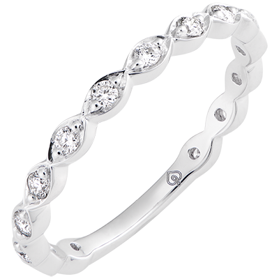 Un anillo compuesto por una sucesión de empedrado en almendra que dan un anillo de formas suaves y refinadas.