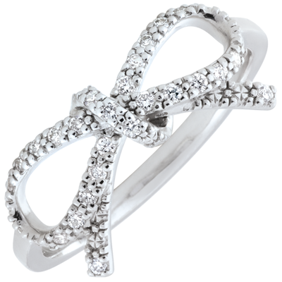 Un nudo hecho de diamantes se posa en su dedo a la perfección y aporta glamur y feminidad a cualquier estilo.