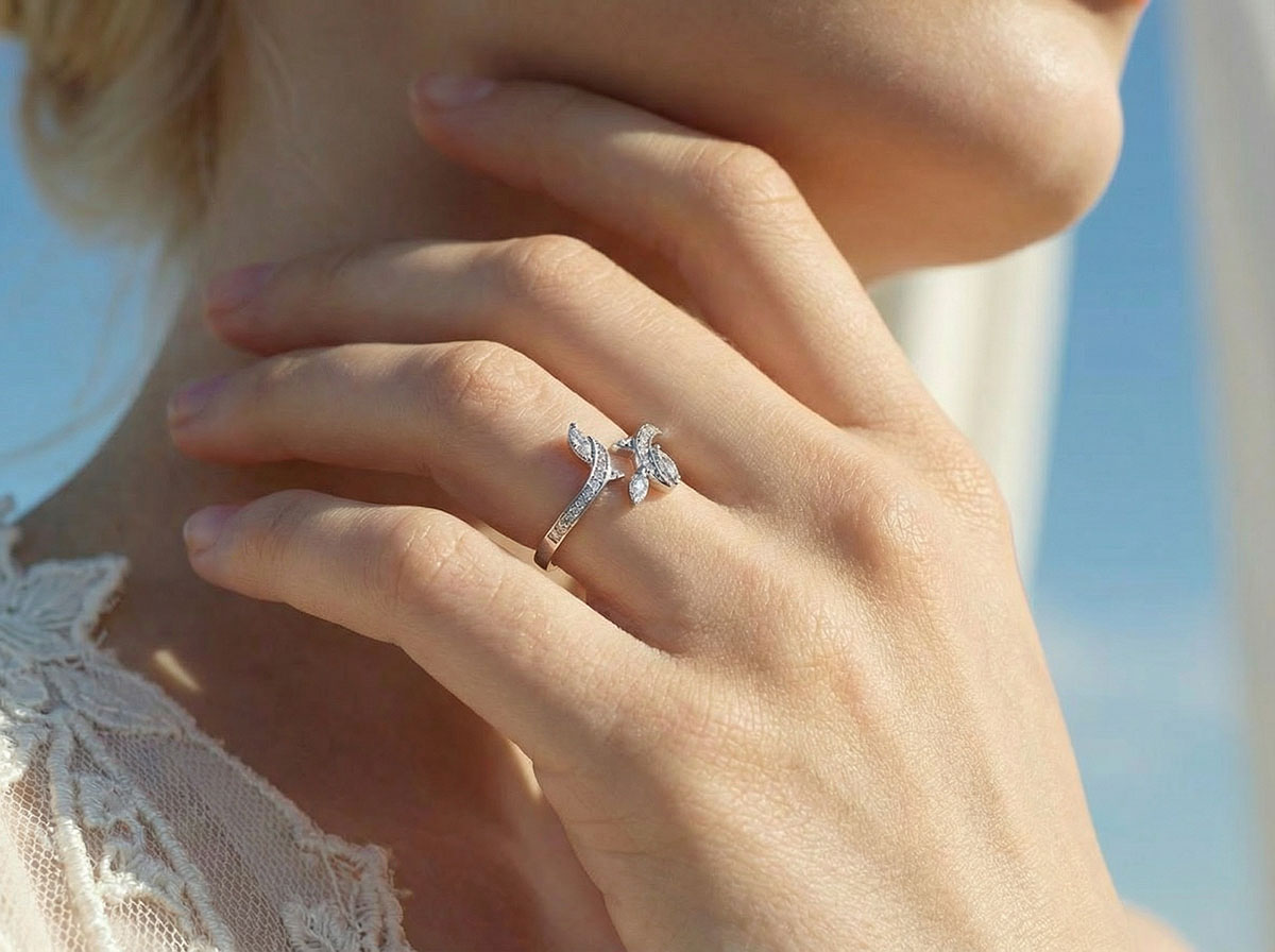 El diseño delicado inspirado en el follaje captura la frescura y elegancia de la naturaleza, ideal para un compromiso refinado.…