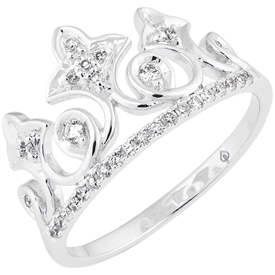 Un anillo coronado y empedrado de diamantes para celebrar el ser sagrado. Un modelo declarativo, con aires de princesa!