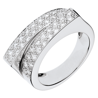 Un diseño sobrio y original en este doble pavimento de diamantes sobre oro blanco.