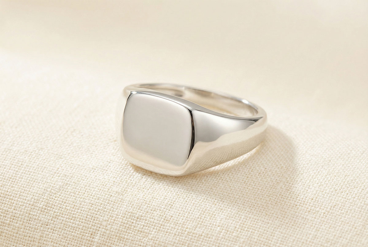 Un Anillo de Sello todo de oro blanco con una cubierta en forma de tonneau