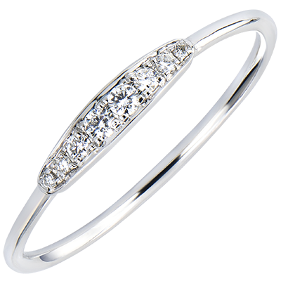 Un anillo juvenil y contemporáneo con un diseño minimalista, recubierto con 8 diamantes sobrios y esenciales.