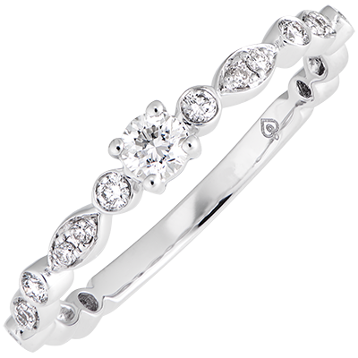 Anillo de compromiso Pequeñas Perlas - oro blanco de 9 quilates y diamantes