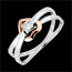 - Diseño equilibrado con corazón de oro rosa suspendido entre dos anillos de oro blanco