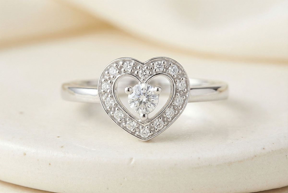 Un romántico corazón de diamantes en cuyo centro se asienta un Solitario.