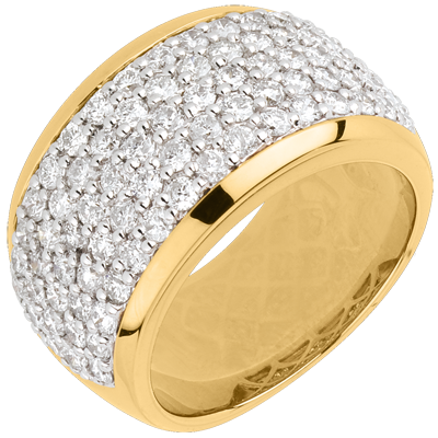 El brillo iridiscente de un pavimento de diamantes, minuciosamente trabajados, hacen de este anillo una pieza excepcional y refinada.