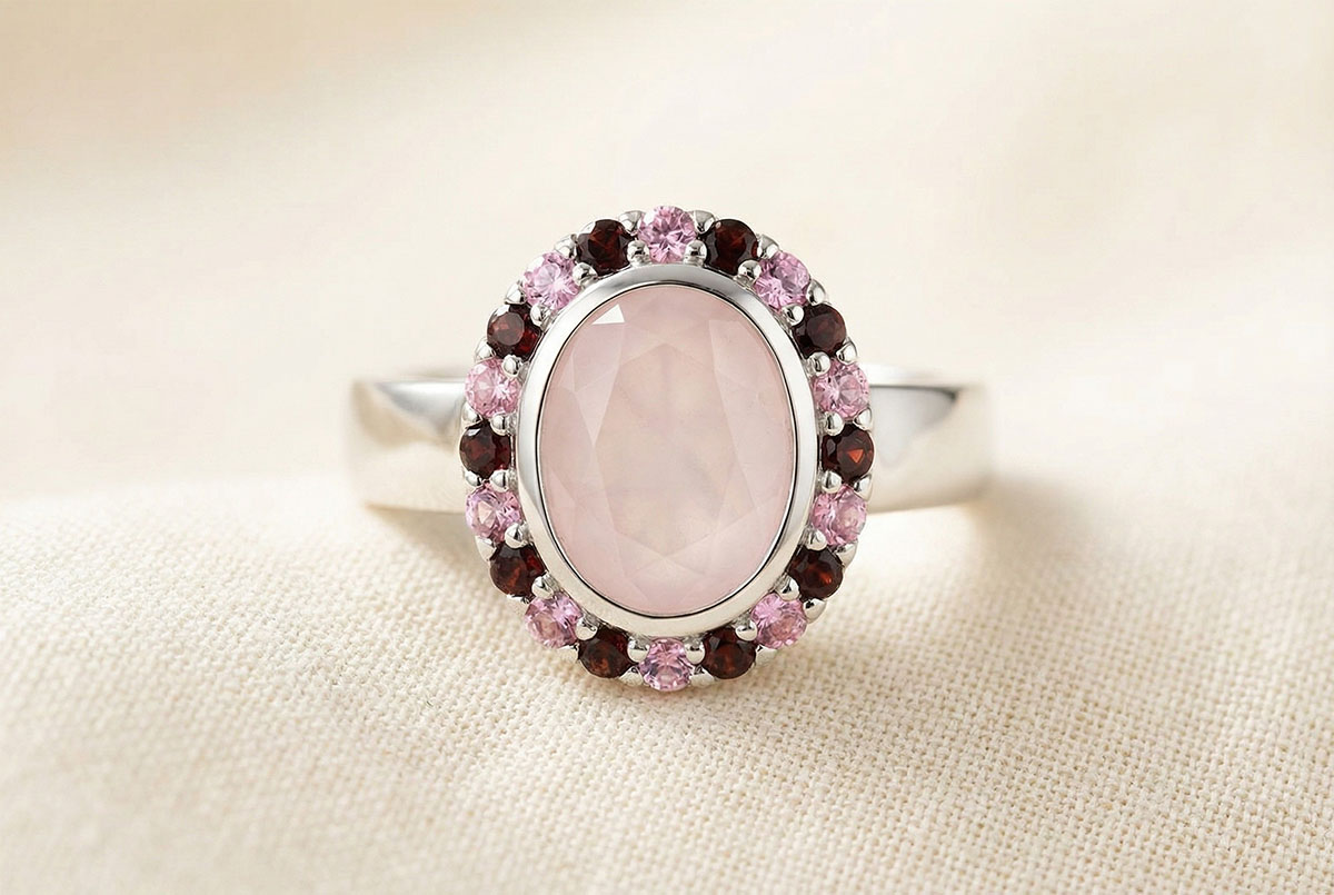 PASEO SOñADO N.º 18Anillo - Plata maciza - Cuarzo rosa, Granate, Turmalina rosa ID : 6313 4.8
