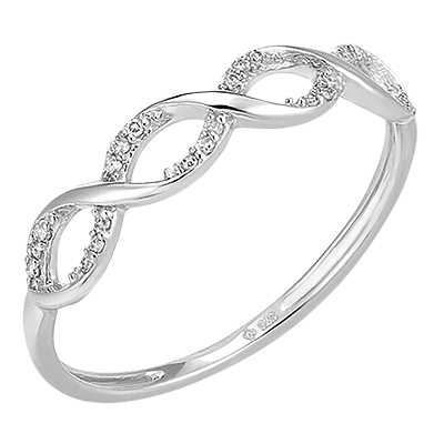 Un anillo con hilos de oro blanco trenzados y cubiertos con diamantes resplandecientes.