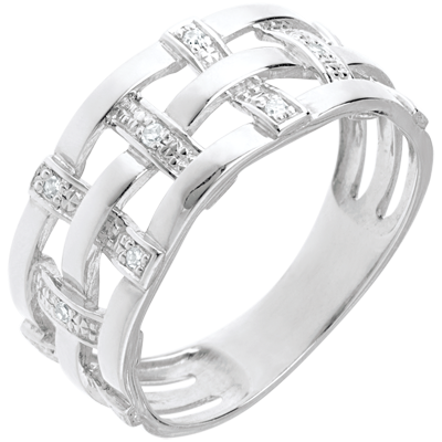 Anillo hilado oro blanco empedrado 18 quilates y diamantes