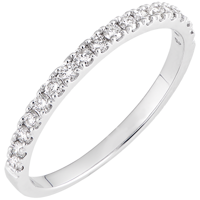 Un anillo de Matrimonio semi empedrado, clásico y atemporal, un imprescindible de la joyería.