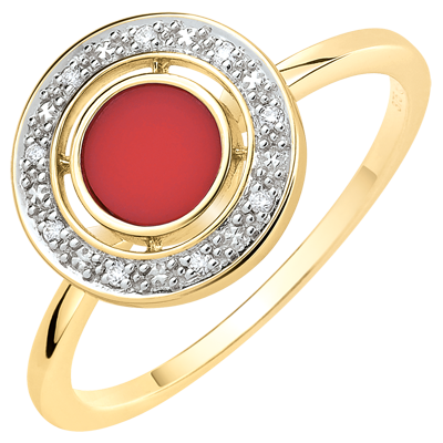 Anillo de matrimonio Felicidad - oro amarillo 9 quilates cornalina y diamantes