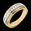 Once diamantes blancos con un peso total de 0,24 quilates están engastados en una fila central, entre dos líneas de oro amarillo.