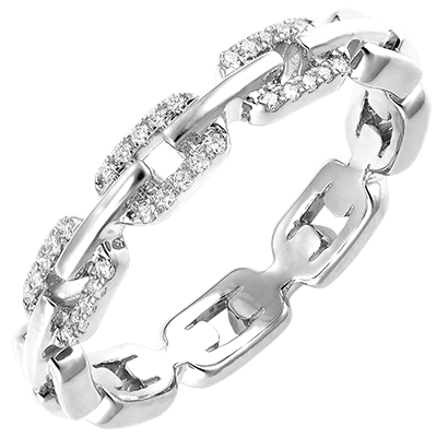 Anillo Mirada de Oriente - Eslabones Cubanos Diamants variation - oro blanco de 9 quilates y diamantes