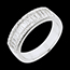 Tres hileras de diamantes, de tallas brillante y baguette, crean un efecto estructurado y sofisticado sobre un arco de Oro Blanco.…