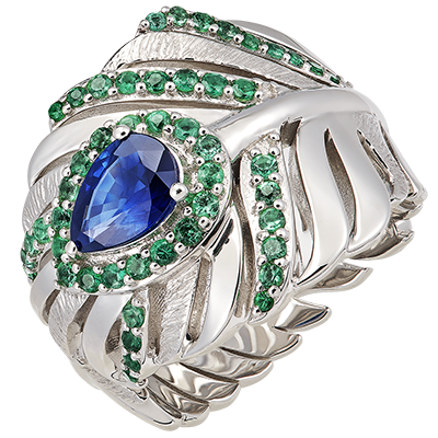 PANACHE N.º 7Anillo - Oro blanco 18 quilates - Esmeralda sintética, Zafiro sintético ID : 6348