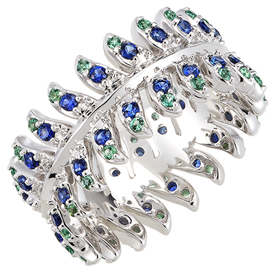 PANACHE N.º 2Anillo - Oro blanco 18 quilates - Esmeralda sintética, Zafiro sintético ID : 6368