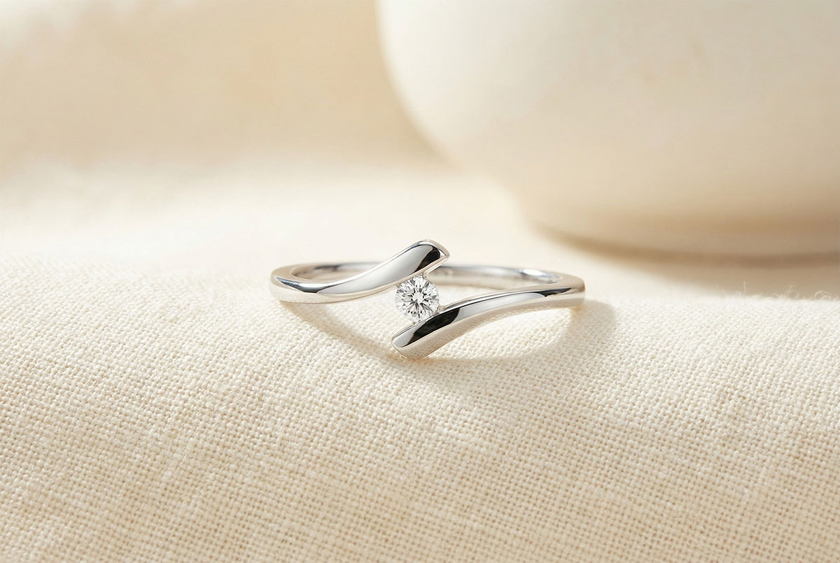 Anillo Solitario Apóstrofe - oro blanco 18 quilates