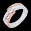 Un diamante solitario sobre un anillo de Oro Blanco enlazado con dos líneas de Oro Rosa.
