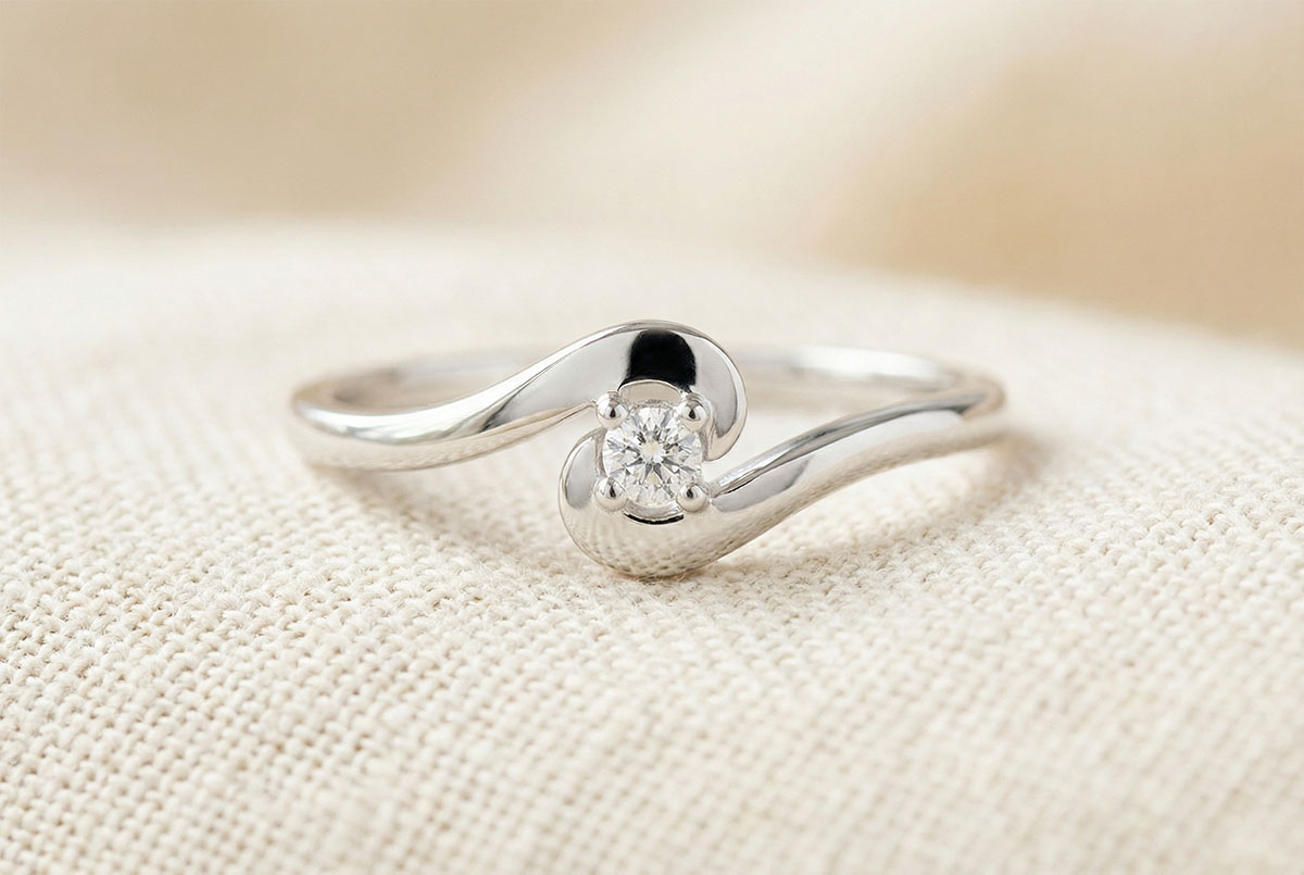 Anillo Solitario Nido Precioso - Unión del Amor - oro blanco 18 quilates