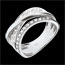 Dos anillos pavimentados con diamantes están delicadamente abrazados por una banda lisa de oro blanco, simbolizando un viaje lujoso e infinito. Una creación refinada que realza la feminidad con brillo y delicadeza.