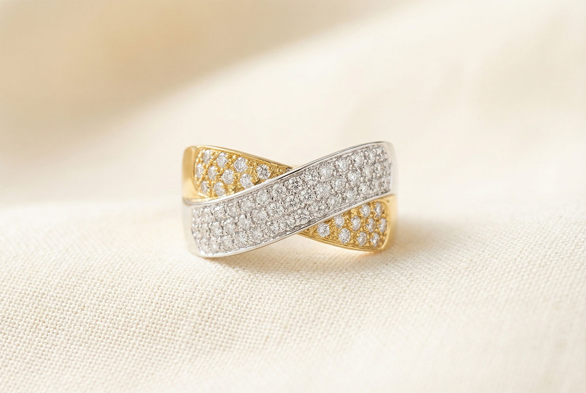 Anillo Tandem Empedrado - oro blanco y amarillo 18 quilates