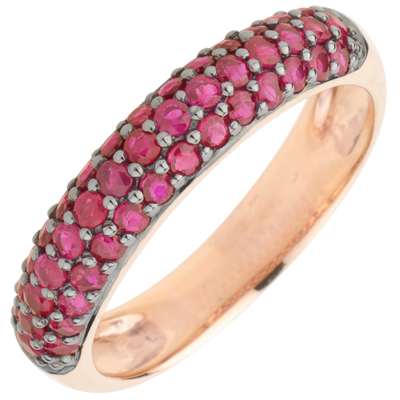 Anillo Aves del Paraíso - tres filas - oro rosa 9 quilates y rubís