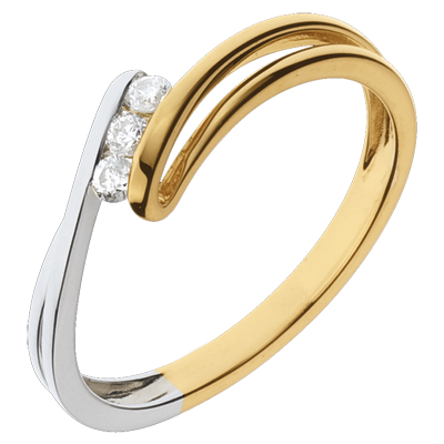 Anillo Trilogía Nido Precioso - Escarcha - oro amarillo y oro blanco 18 quilates - 3 diamamantes